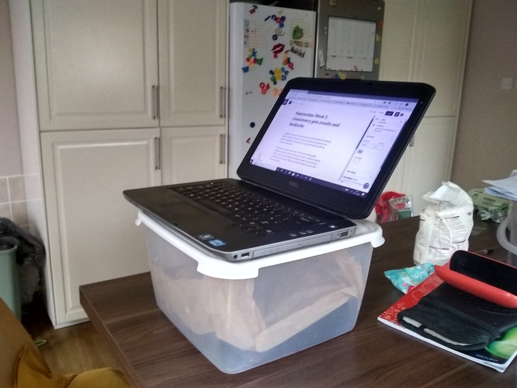 I thought I wrote more than this every day outside National Novel Writing Month. Clearly not. Because now I have backache. I’m typing this in my kitchen, standing up, my computer set on top of the large box with my Christmas cake inside.